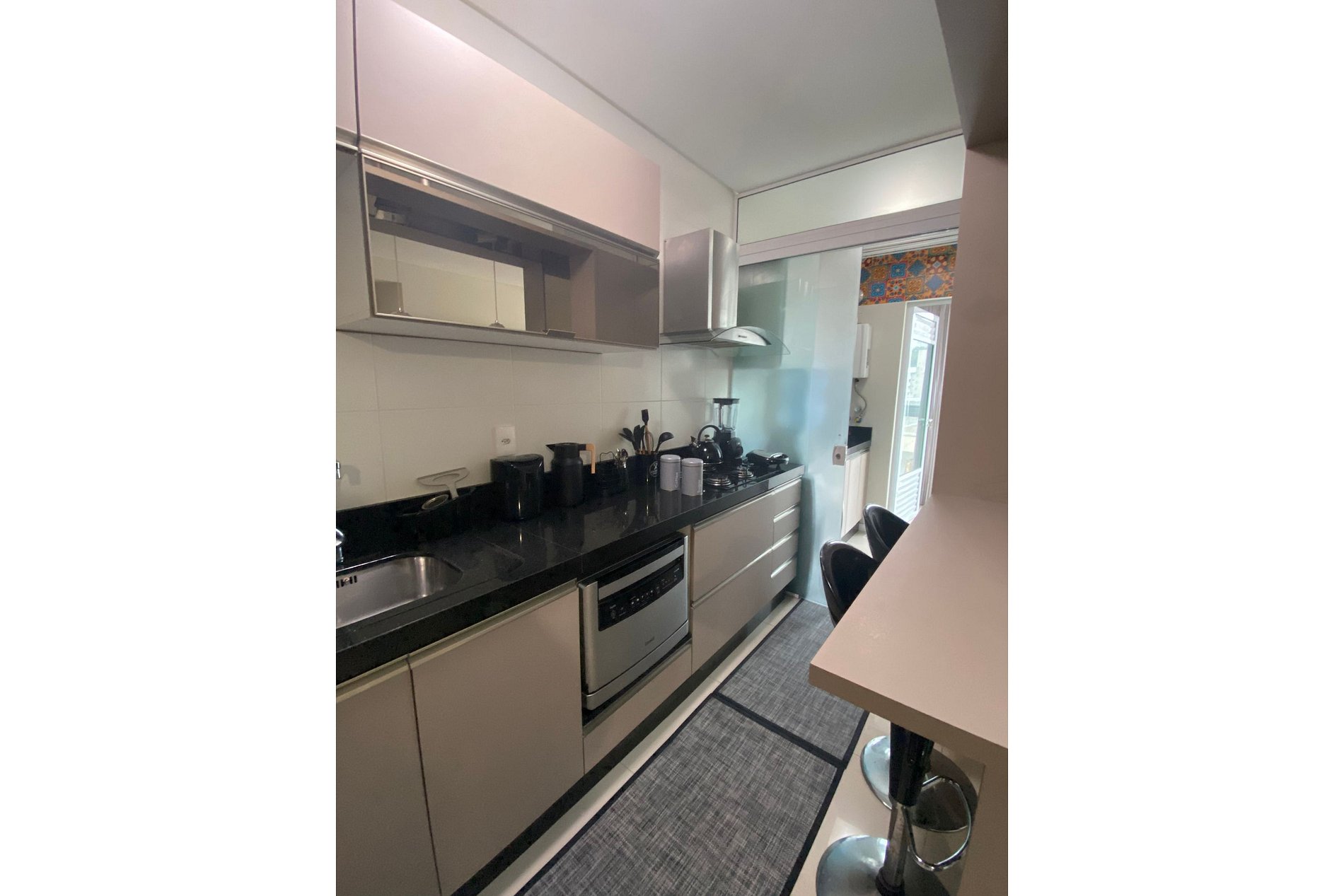 Possui 2 dormitórios sendo uma suíte, todos com ar condicionado, sala de estar, jantar e varanda integrados com ar condicionado e churrasqueira a carvão.