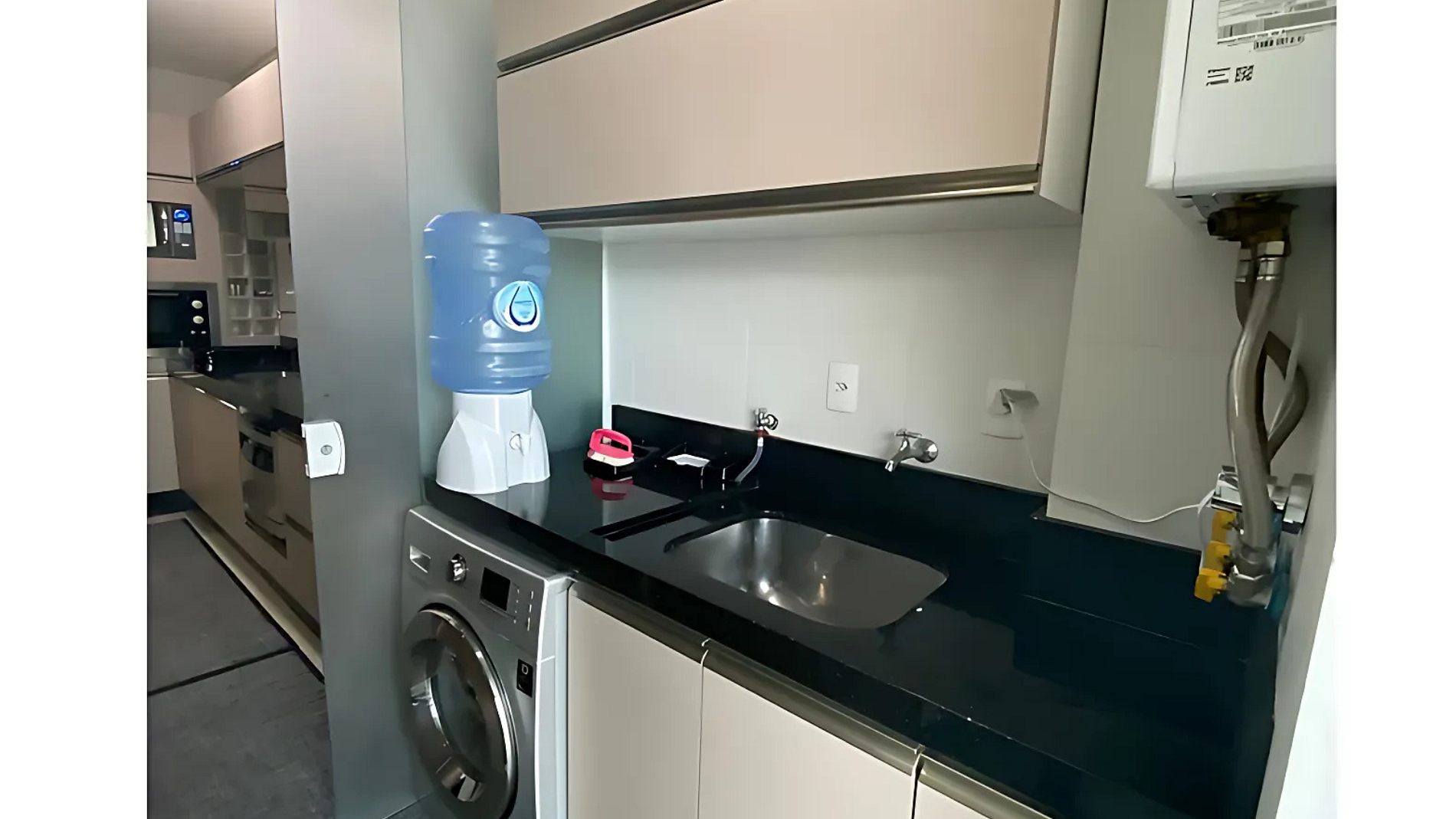 Cozinha bem equipada com lava louças diversos eletro e utensílios domésticos.