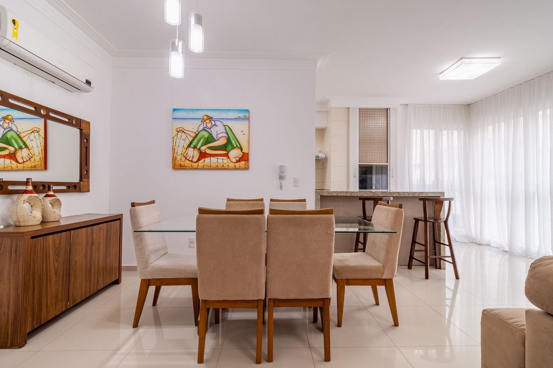 - Espaço para jantar com mesa de 6 cadeiras;