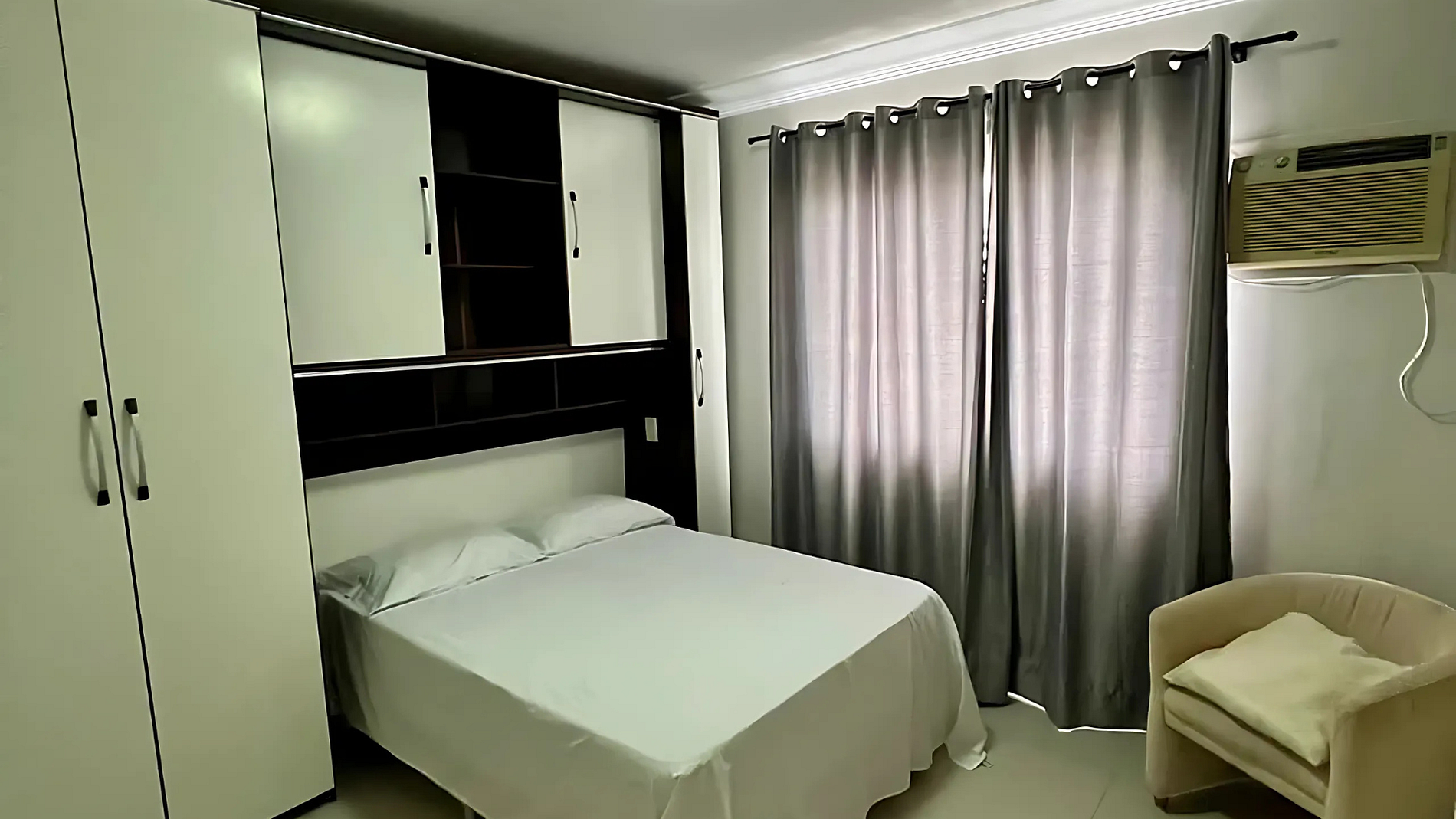Dois dormitórios bem amplos e arejados. Um dormitório suíte com ar condicionado e mais um dormitório.