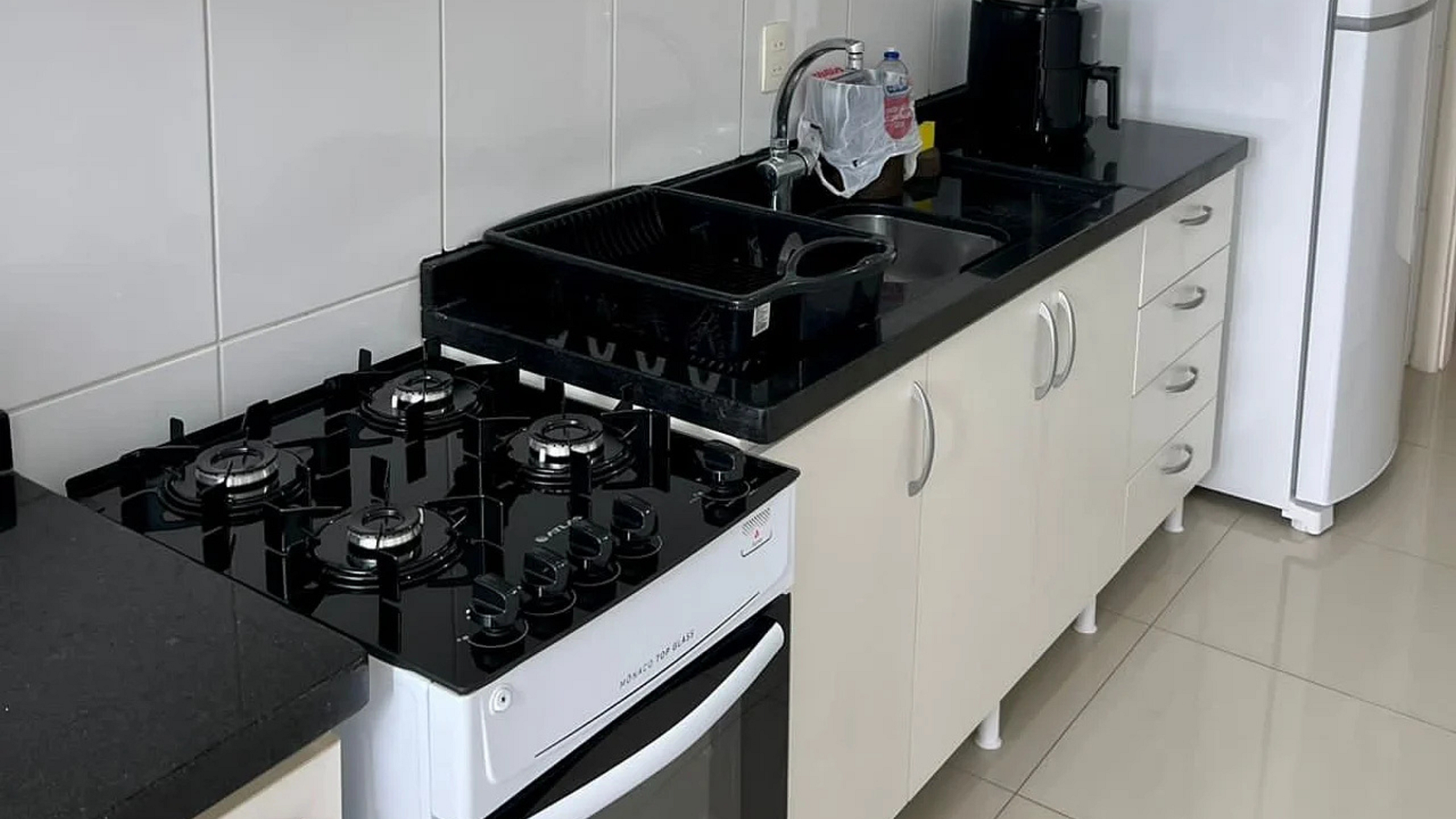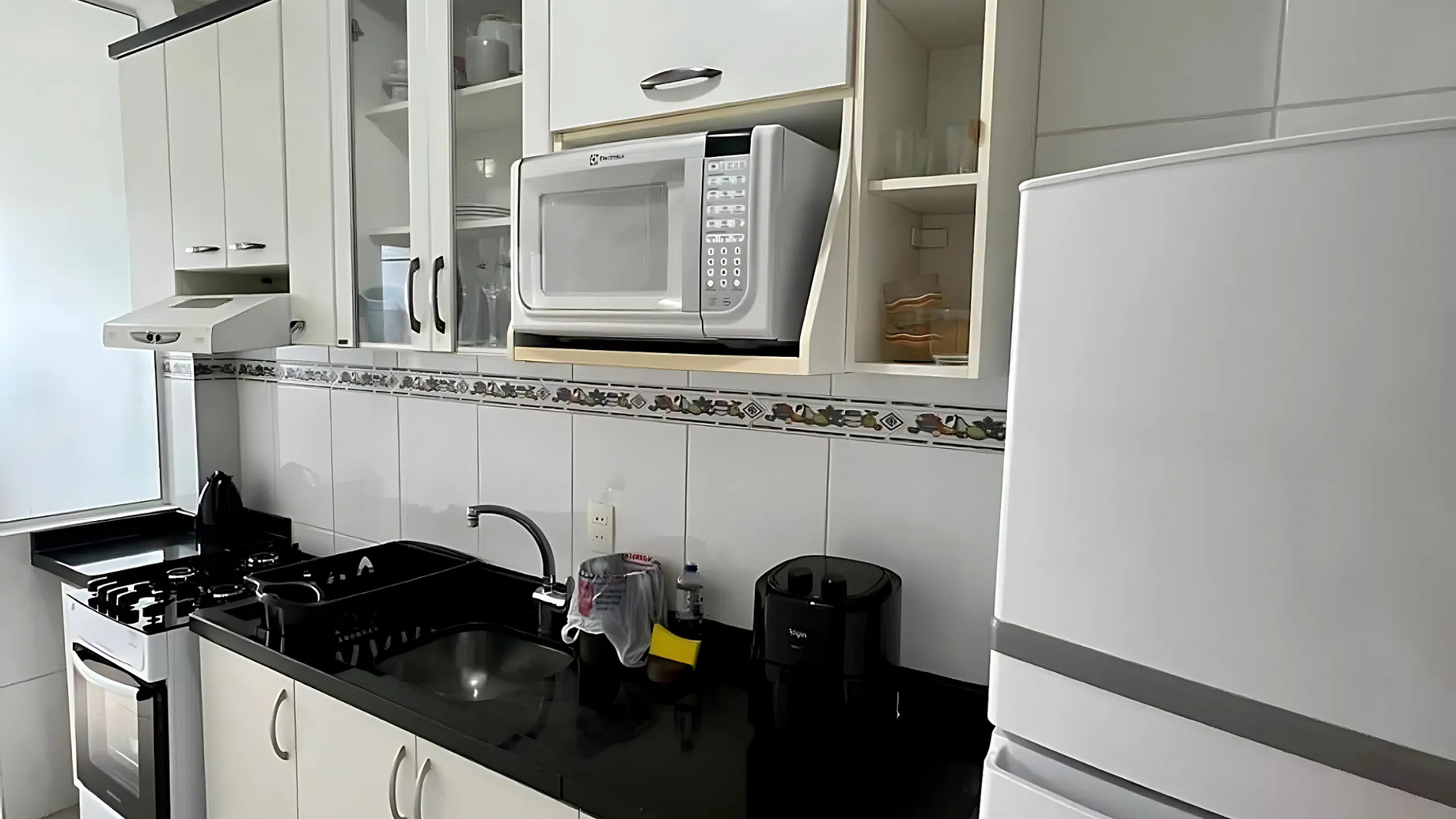 Cozinha bem equipada com eletros e utensílios domésticos, lavanderia com máquina de lavar roupas, vaga de garagem privativa e wifi.