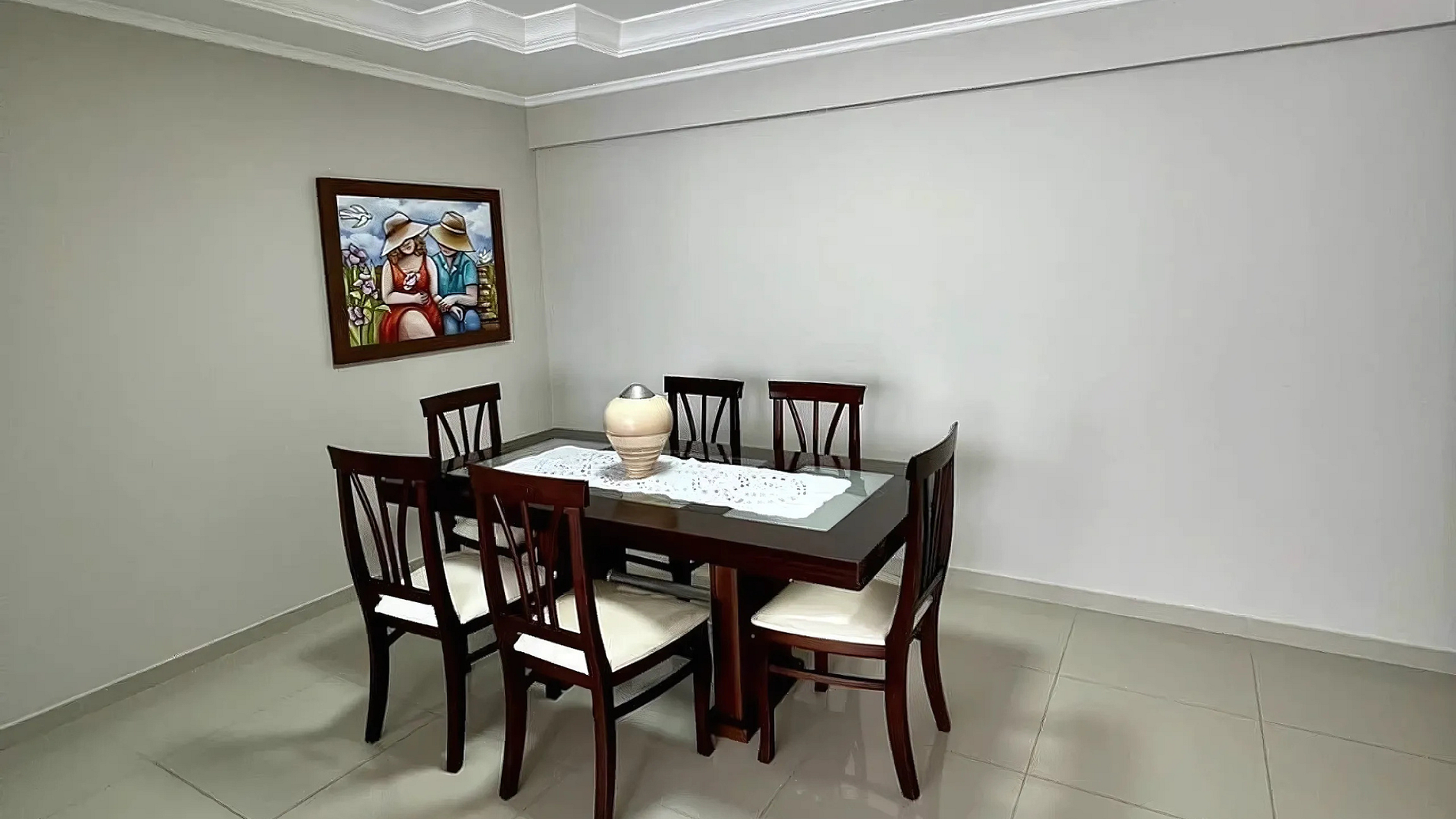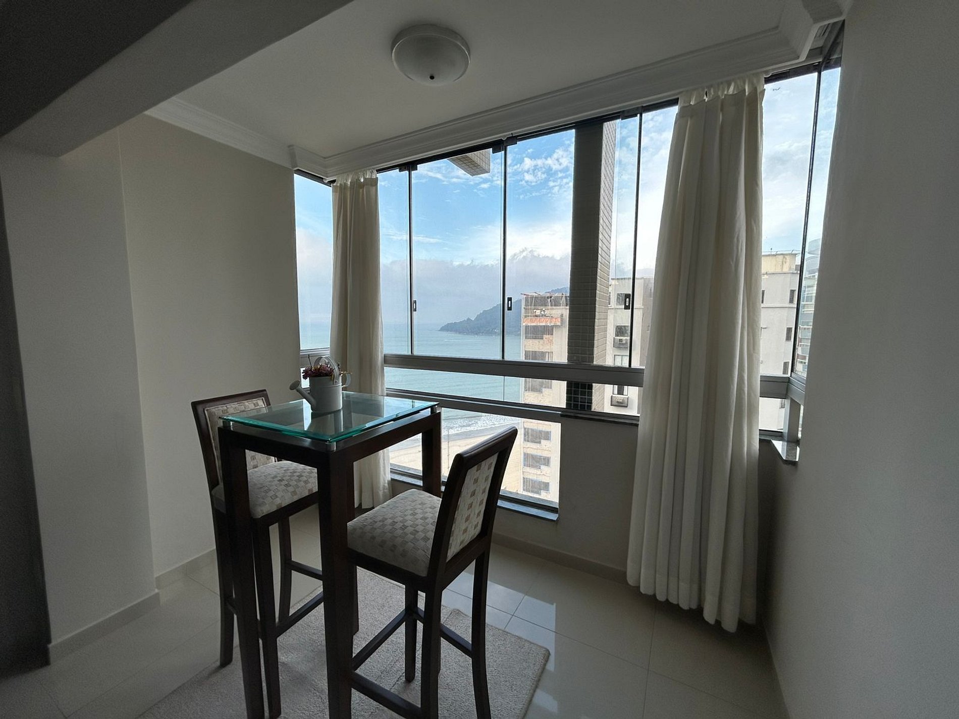 Ampla sala de jantar com mesa para 6 pessoas. Sala de estar e sacada integradas com uma mesinha alta onde vc pode desfrutar de um delicioso café com vista para o mar.