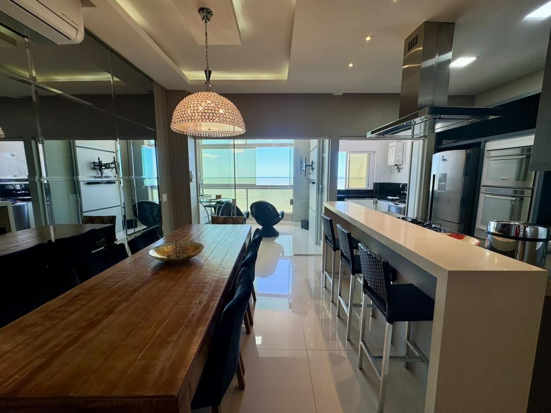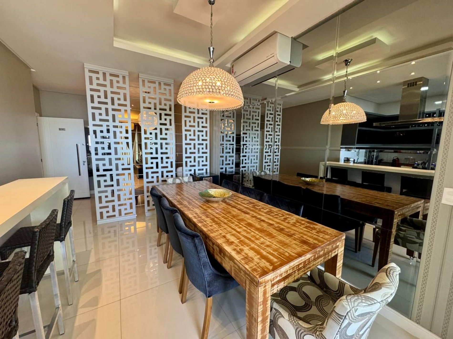 -Sala de jantar com ar condicionado, mesa 8 cadeiras;