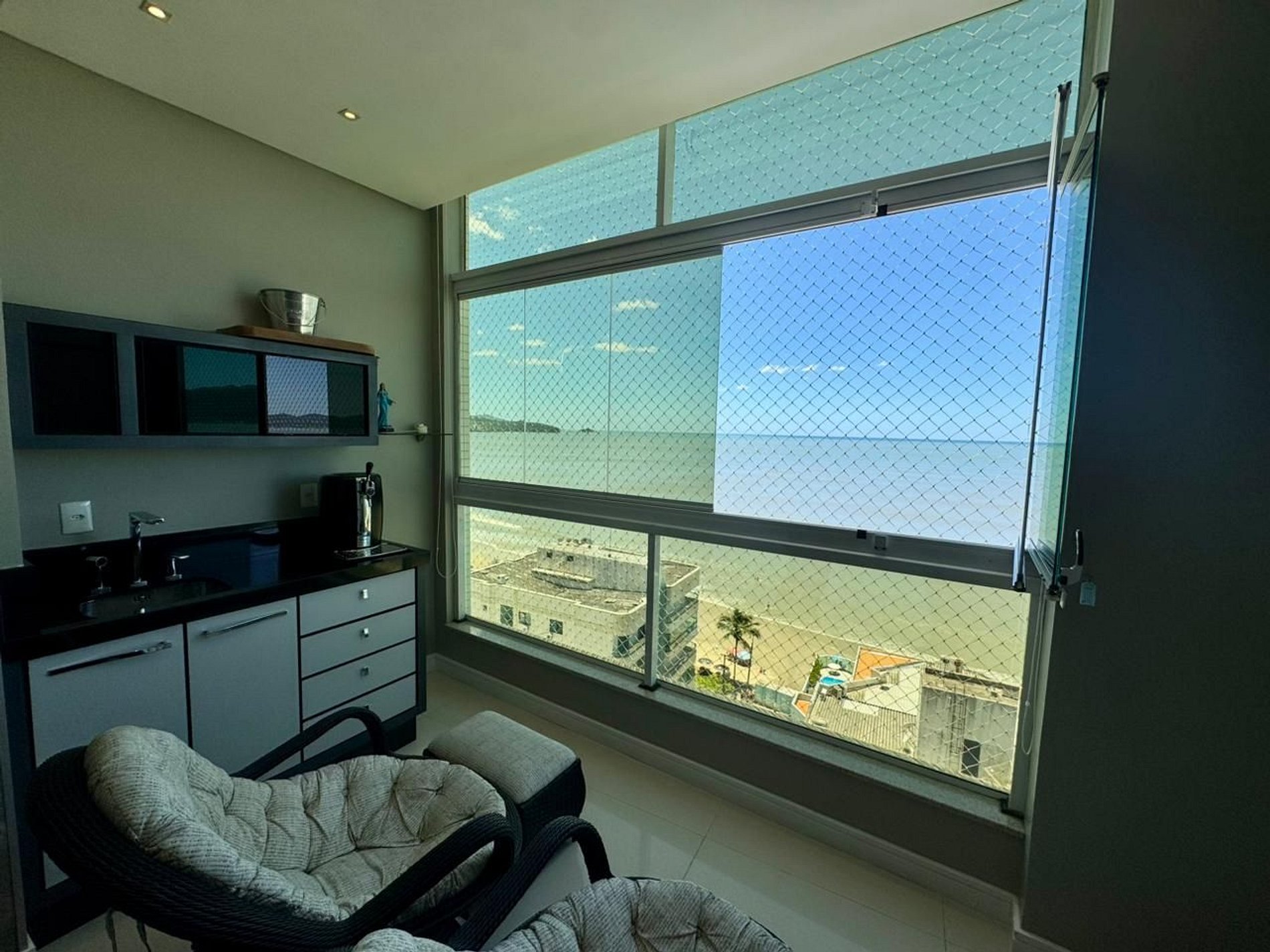 - Sacada frente mar com churrasqueira;
