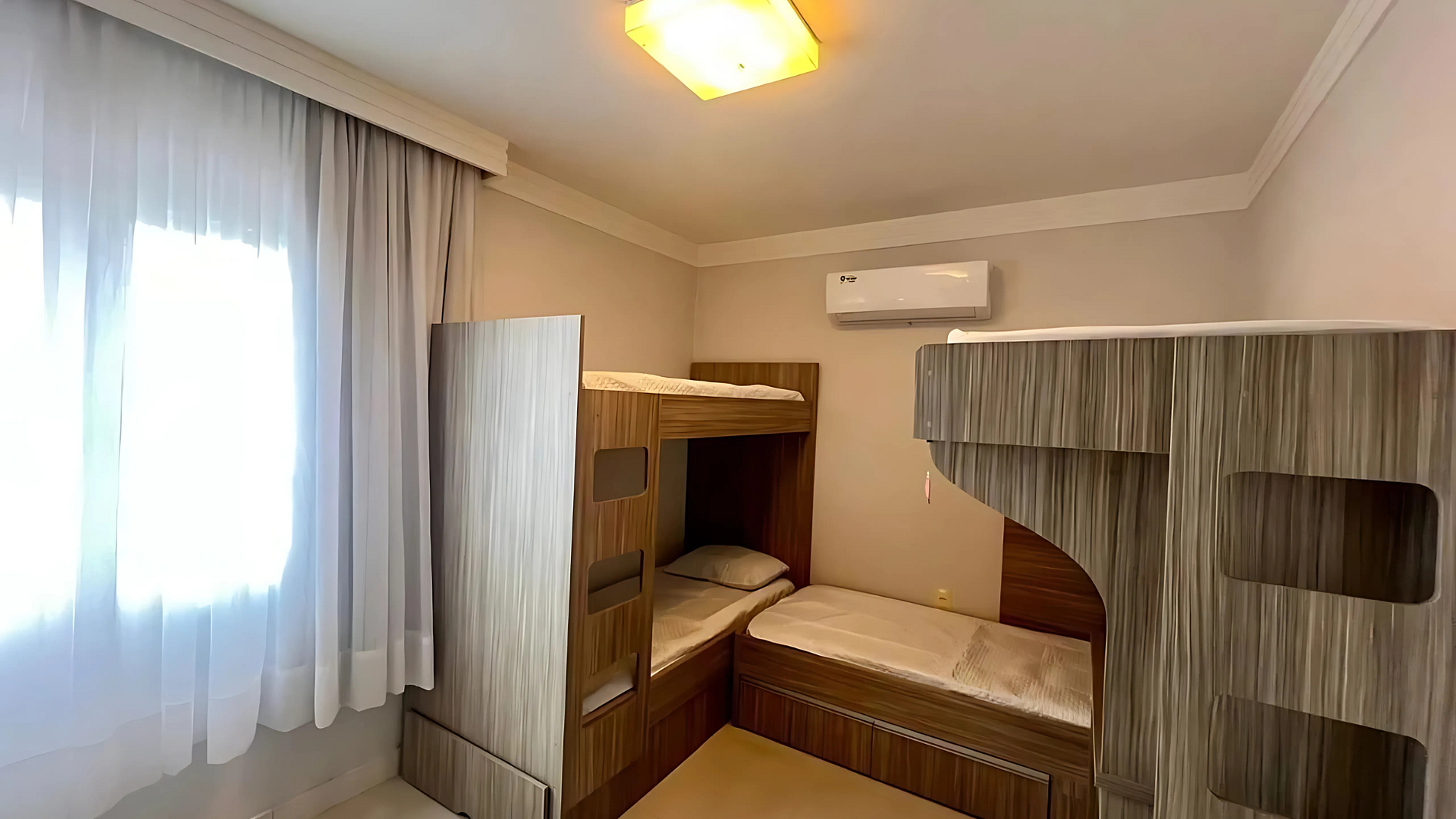 O espaço Almeida e Moraes Ilha das Cabras é todo equipado e decorado para que você e sua família sintam-se no conforto de sua casa. Atende bem 8 pessoas confortavelmente, com ambiente agradável, bem iluminado pelo sol e arejado pela brisa do mar. Possui 3 dormitórios, um deles uma suíte. Disponibilizamos roupas de cama, travesseiros e mantas.. * Um banheiro social, chuveiro elétrico e secador de cabelo. * Cozinha com móveis planejados, mesa giratória para até 8 pessoas, equipada com cooktop, forno embutido a gás, exaustor, microondas, geladeira frost free, liquidificador, sanduicheira, assadeiras, panelas, talheres, pratos, xícaras e utensílios. * Lavanderia com máquina de lavar e secar e tanque, * Sala de estar com tv , sofá, mesa *Internet Wi-Fi, disponível para seu acesso Netflix e YouTube. O prédio conta com o acesso principal pela Rua 1500, hall de entrada, dois elevadores, câmeras de segurança, zeladoria, vigilante. O checkin e checkout serão receptivos, combinados após a confirmação da reserva bem como demais informações. Ao entrar no Apto, você encontrará um manual com instruções e sugestões para sua estadia.