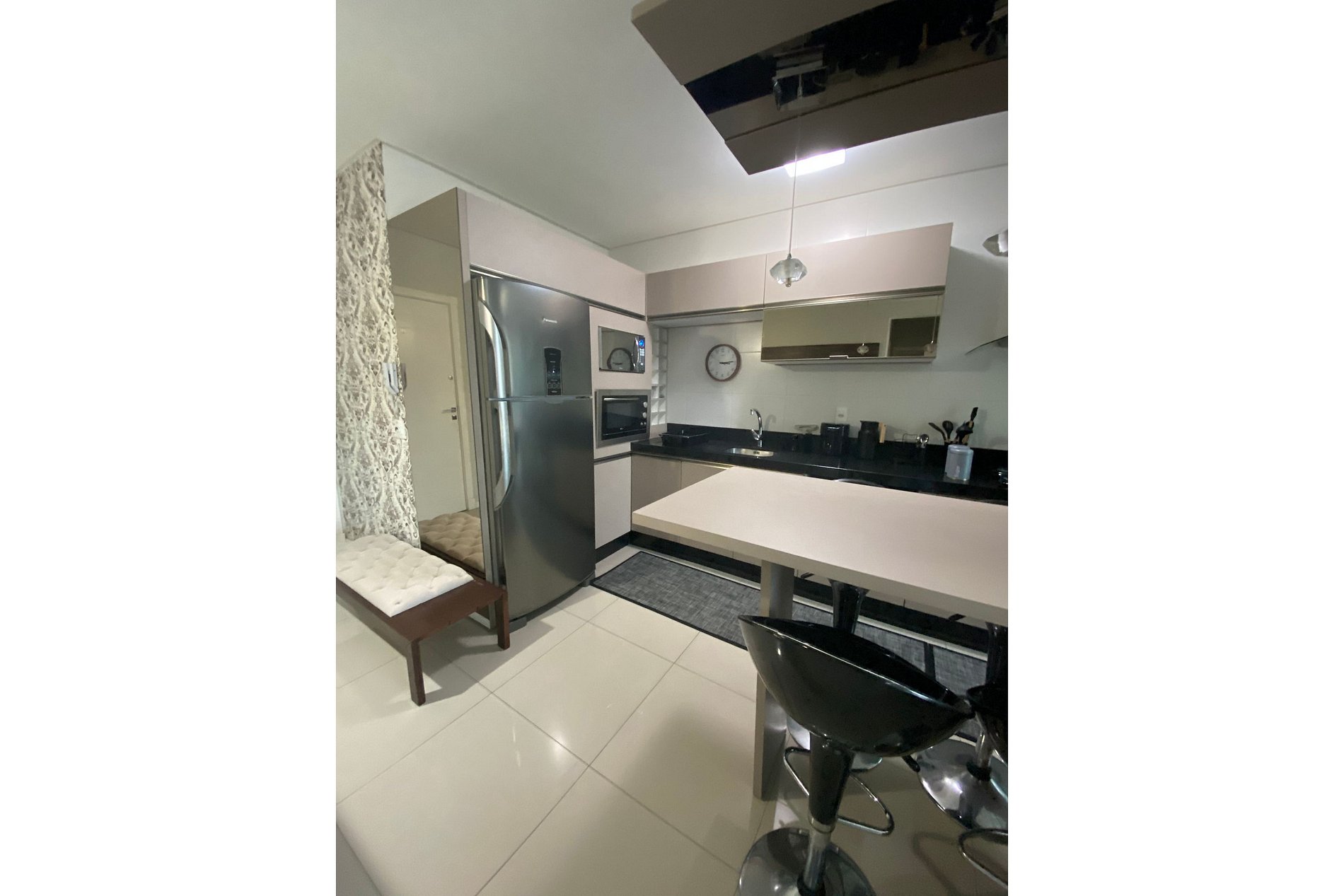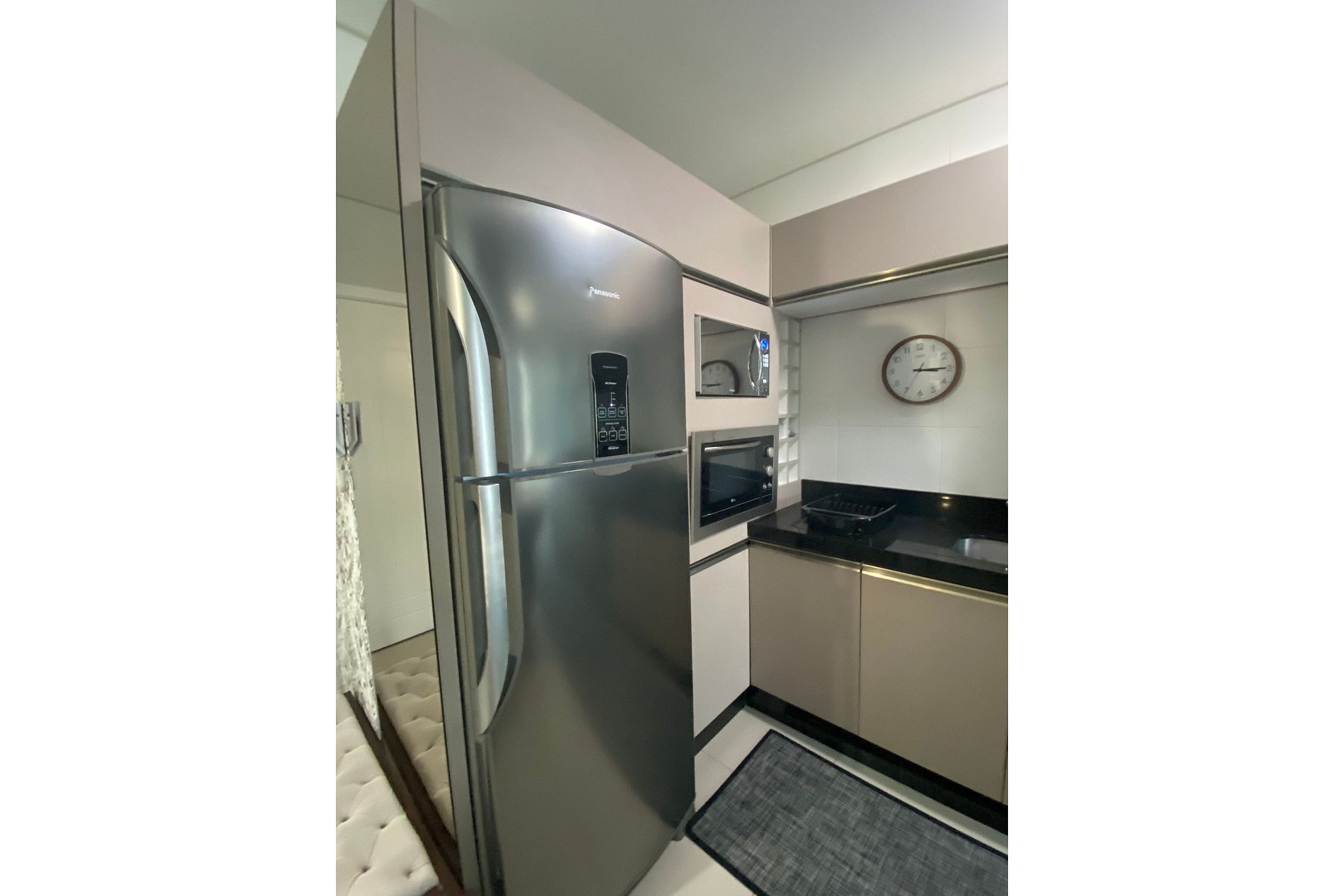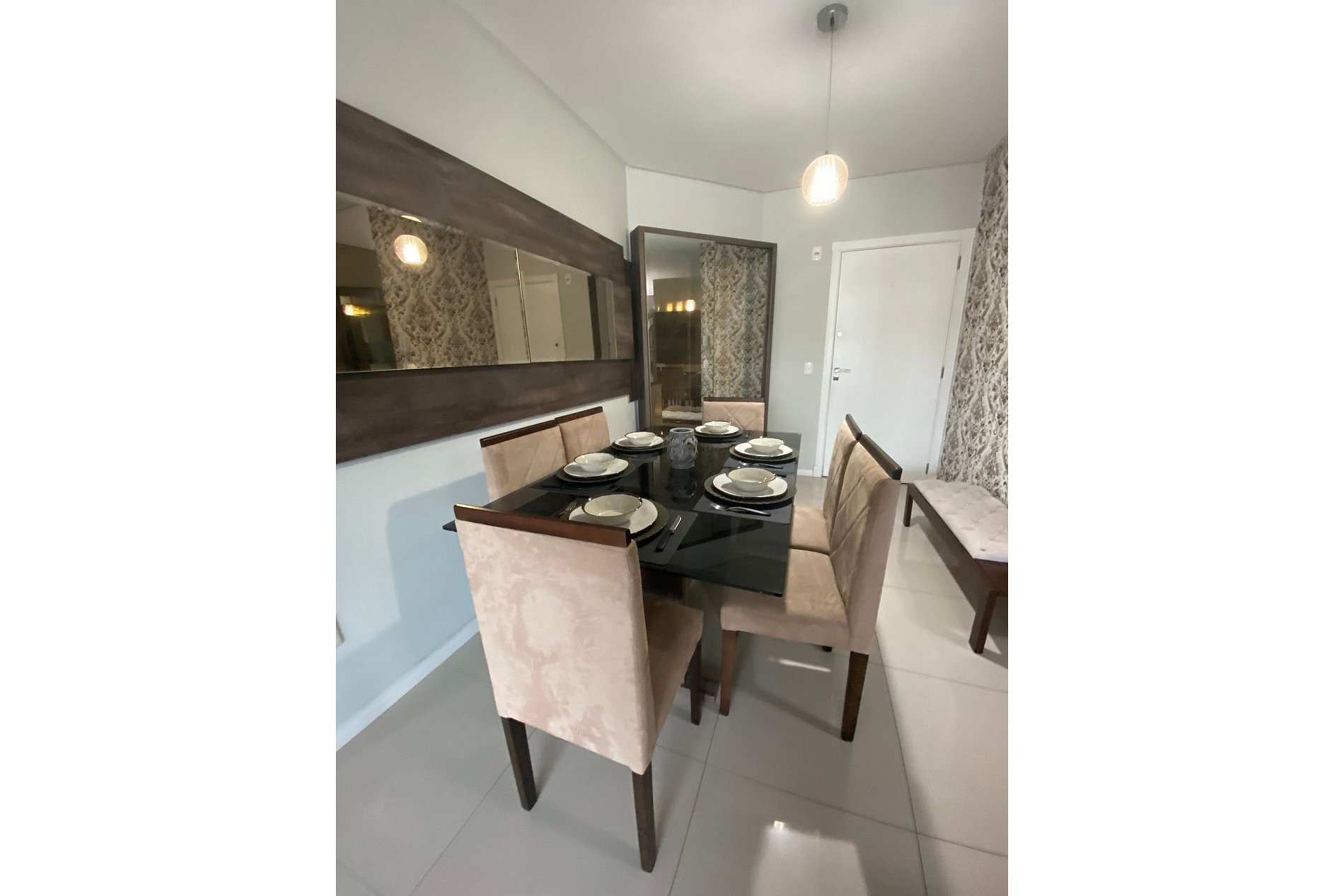 Possui 2 dormitórios sendo uma suíte, todos com ar condicionado, sala de estar, jantar e varanda integrados com ar condicionado e churrasqueira a carvão.