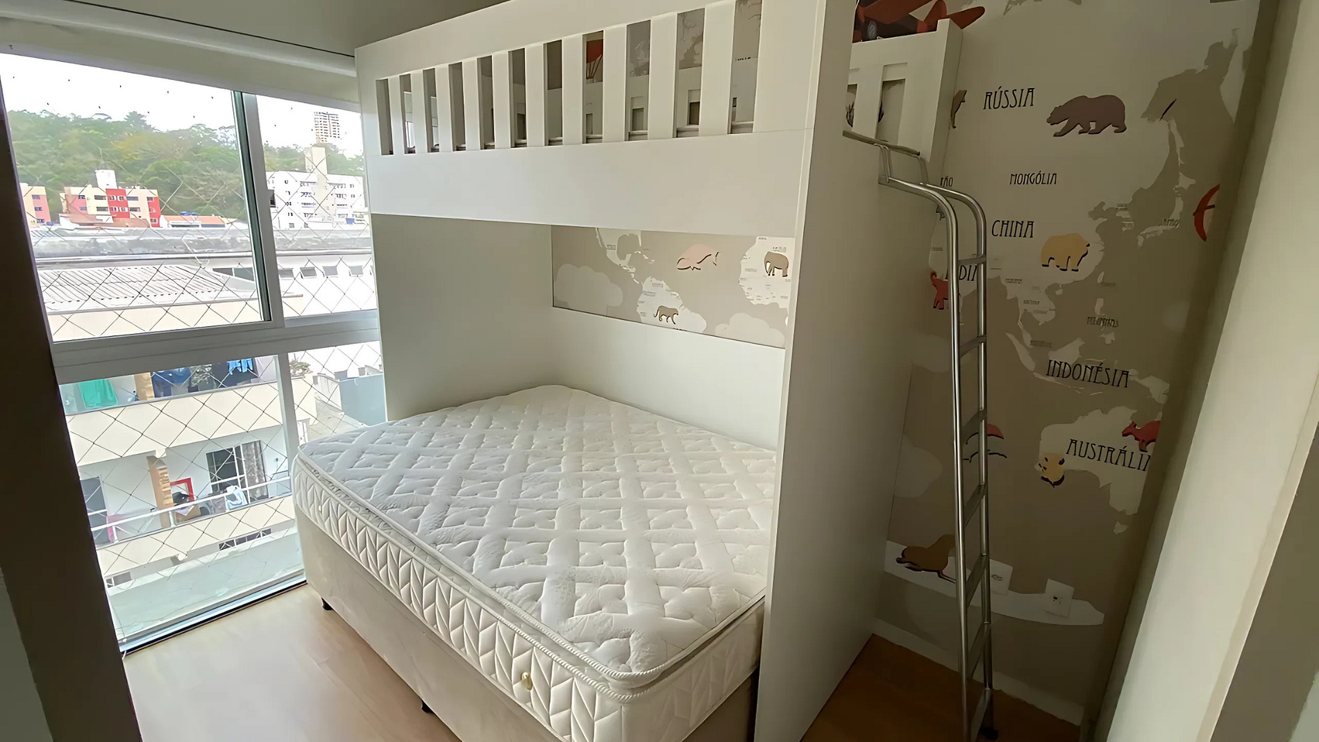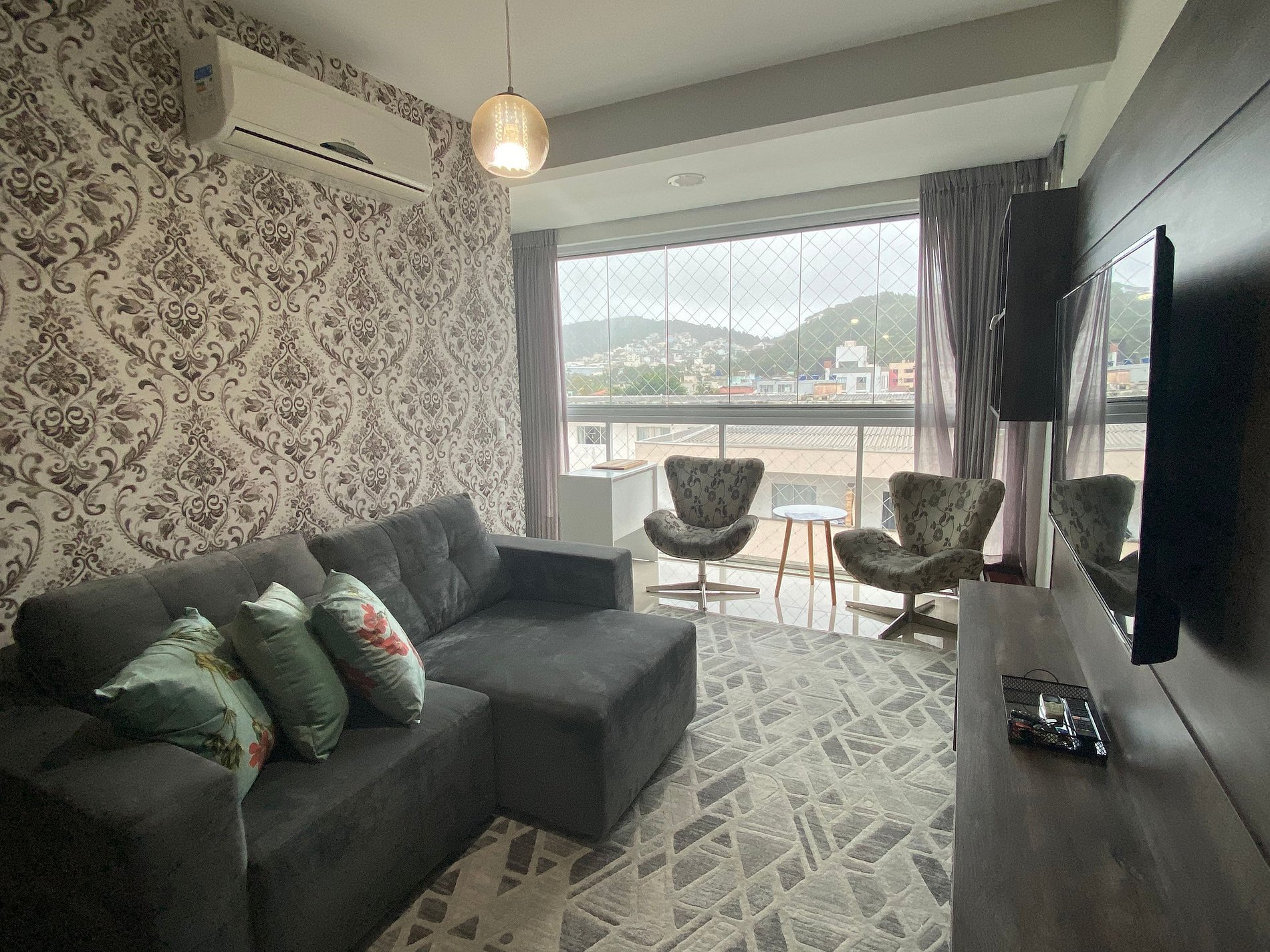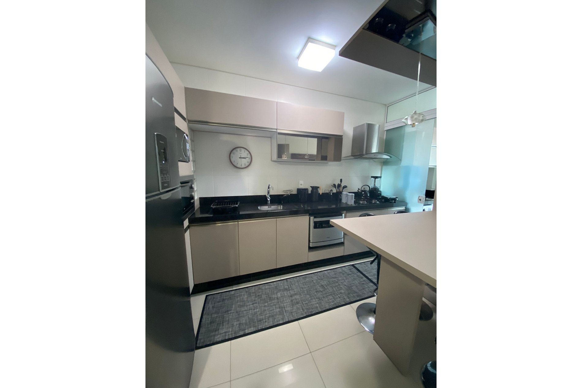 Possui 2 dormitórios sendo uma suíte, todos com ar condicionado, sala de estar, jantar e varanda integrados com ar condicionado e churrasqueira a carvão.