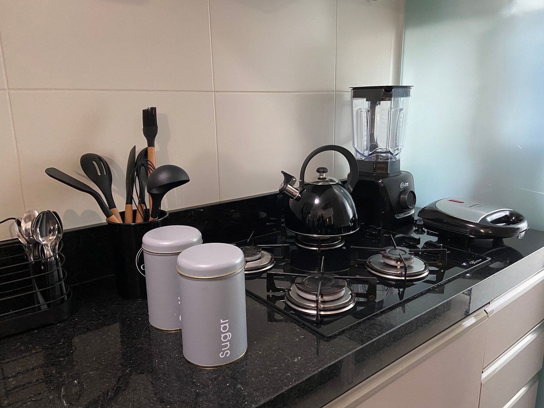 Cozinha bem equipada com lava louças diversos eletro e utensílios domésticos.