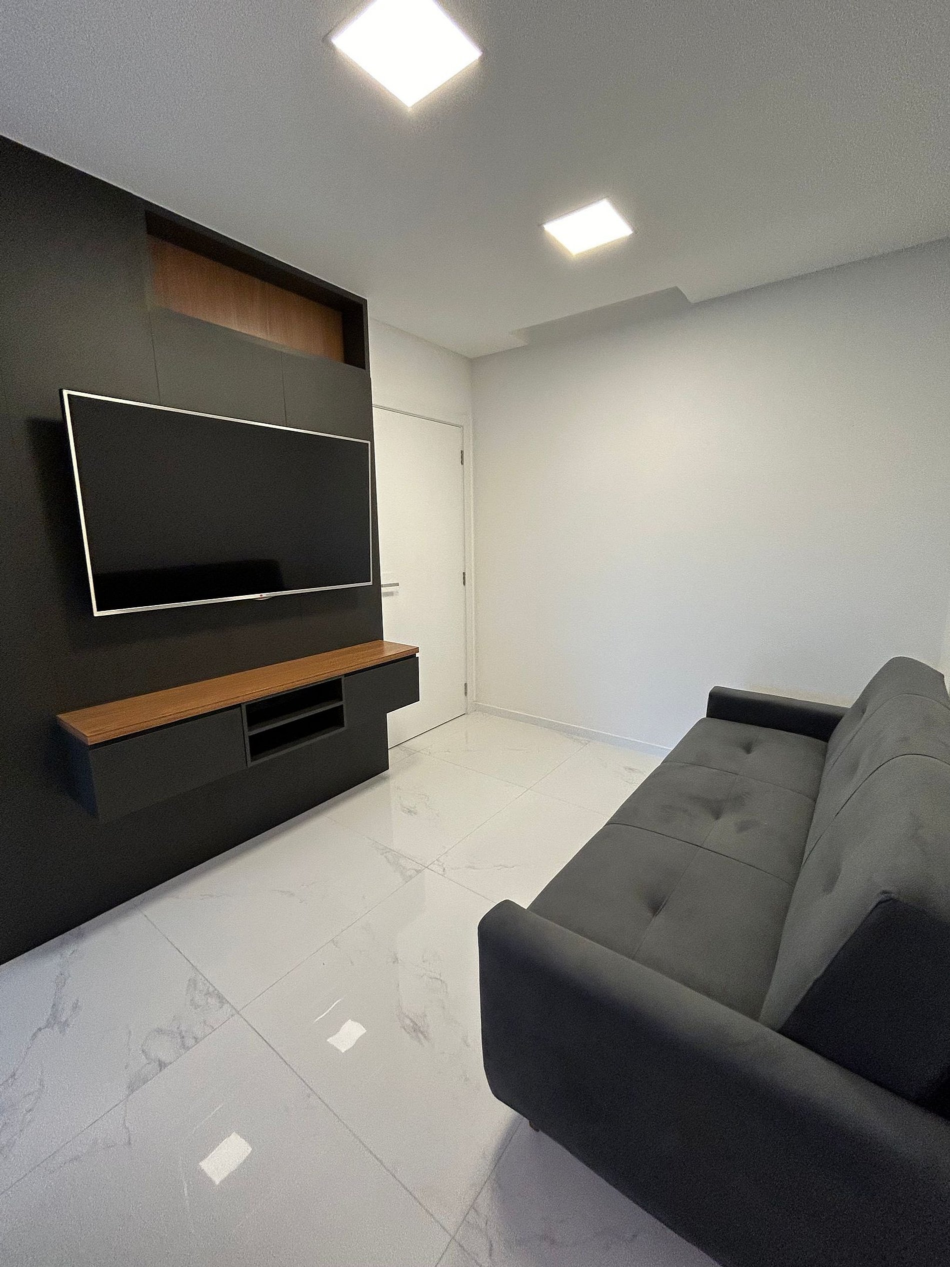 Na sala temos um confortável sofá e TV Smart tv .